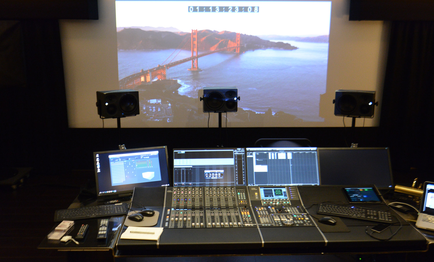 Als Audionetzwerk kommt Dante zum Einsatz. Aus der Yamaha AIC128-D Karte geht man mit 128 Kanälen in die Dolby Atmos Mastering Suite. Aus der Dolby Atmos Mastering Suite geht es mit zwölf Kanälen (7.1.4) auf den Yamaha MMP1 Monitor-Controller, mit dem auch die Lautsprecherentzerrung und die Delay-Einstellungen realisiert werden. Vom MMP1 geht es dann auf das Yamaha A16 und dann auf die Abhöre oder über die Endstufen direkt auf die Abhöre.