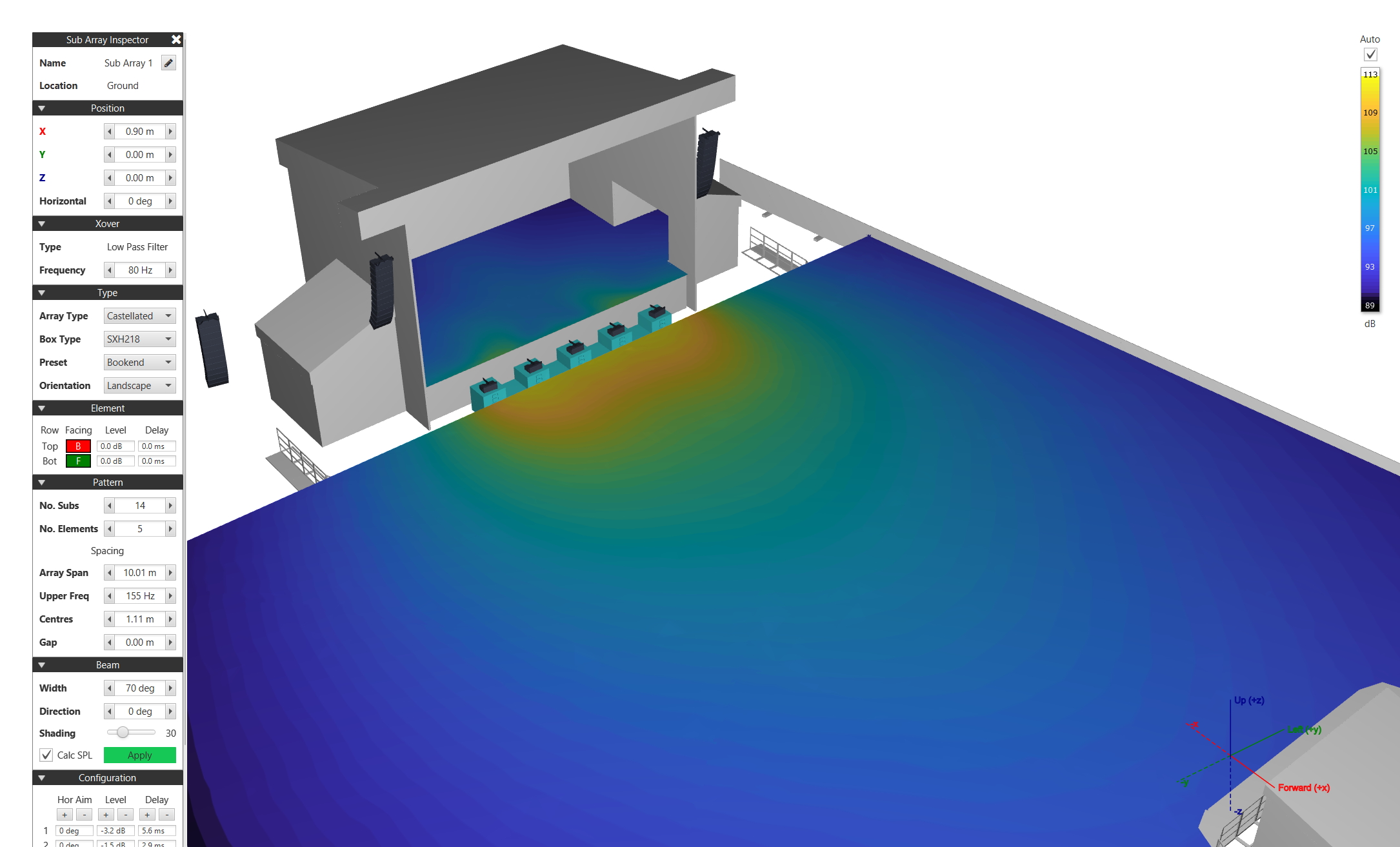In this version, two sub array types are supported with ‘Broadside Stack’ and ‘Castellated’ configurations. For Broadside Stacks any sub loudspeaker can be selected, while for Castellated scenarios only subs which have cardioid settings available can be utilised - but more will be added over time.
