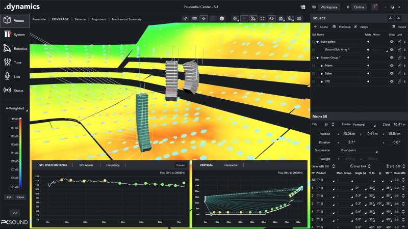 PK Sound, the robotic line array company, has formally released V1.0 of its PK .dynamics robotic system control software for Windows and macOS. Combining every stage of the modern live sound workflow in a single solution, .dynamics lets users take their designs from conception to the real world with the flexibility of real-time coverage adjustments even after the system is flown.