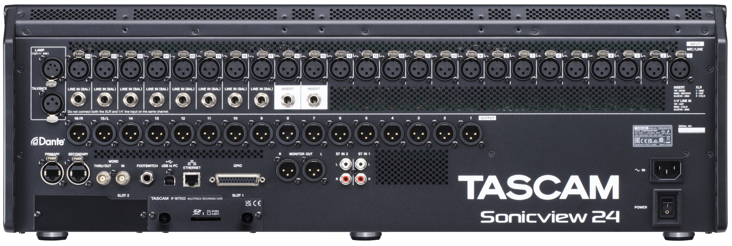 Ebenfalls neu aus dem Hause Tascam ist eine Dante-fähige Stagebox (SB-16D) mit 16 Ein- und Ausgängen und hochwertigen Vorverstärkern, deren Eingangsverstärkung sich über Sonicview fernsteuern lässt. Die Stagebox kann sowohl auf dem Boden als auch im Rack verwendet werden und ist eine ideale Ergänzung zur neuen Mischpultreihe.