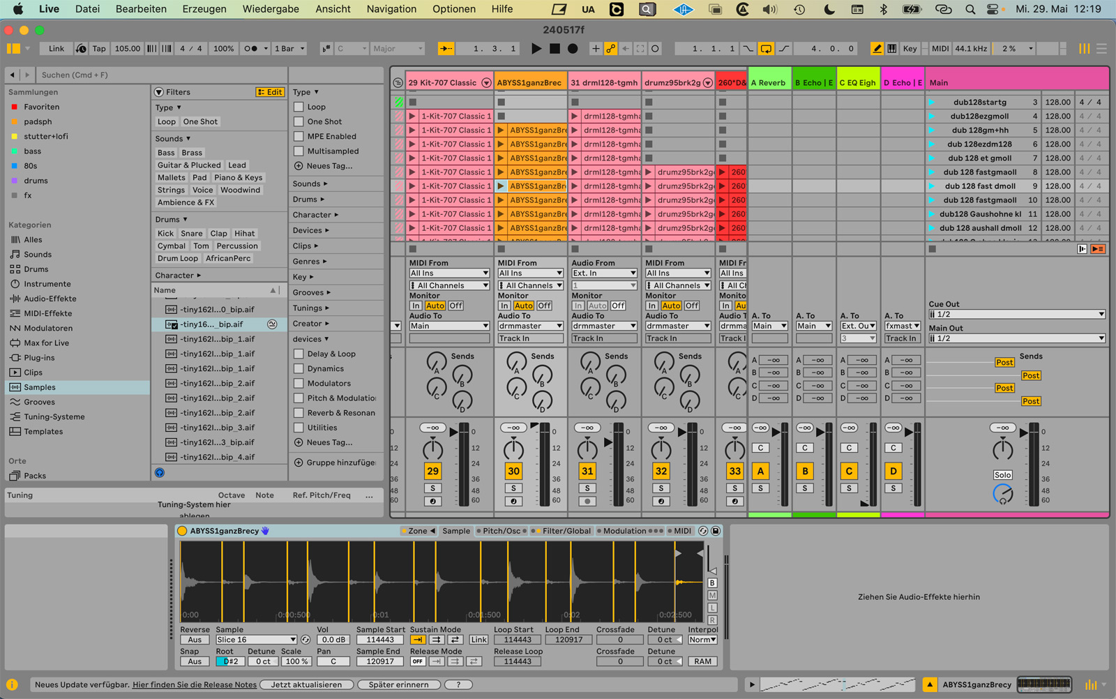 Ein „Similar Sample Swap“ Feature (auf deutsch: Schaltflächen zum Austausch ähnlicher Samples) wurde übrigens auch in Drum Racks und den Simpler integriert, so dass man schnell Samples austauschen kann. Samples, die bleiben sollen, lassen sich dabei vor dem Austausch schützen, indem sie verriegelt werden.