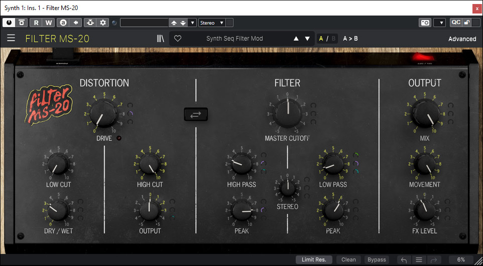 Neu in der Version 4 der FX Collection ist das "Filter MS-20", unverkennbar eine Emulation des Filters aus dem Korg MS-20.