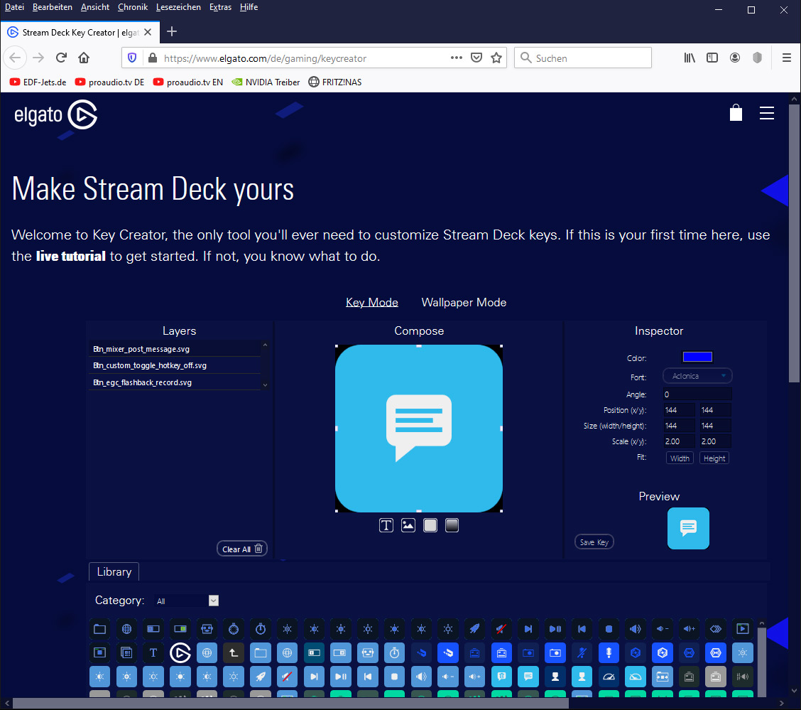 Über einen Editor auf der Elgato-Web-Site kann man auch eigene Icons kreieren (s. Abb. oben).