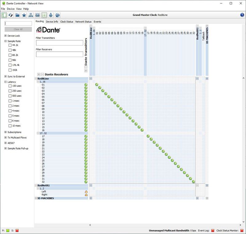 Die Kanalzuordnung im Dante-Audionetzwerk wird über den Dante Controller schnörkellos eingestellt. Dank der Dante virtuellen Soundkarte (DVS) lässt sich dann beispielsweise eine insgesamt 32 mal 32 große Signal-Matrix verwalten.