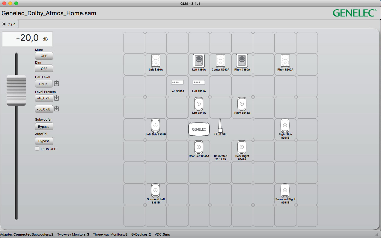 Alle Modelle lassen sich über Cat-5-Kabel verbinden und über das GLM Control Network von Genelec über die GLM-Software kontrollieren. Dazu werden die Lautsprecher an einen GLM-Adapter angeschlossen. Wir haben die GLM-Software schon mehrmals bei uns vorgestellt, wie zum Beispiel in dem Test über die GLM Version 2. Mittlerweile ist die GLM Version 3 verfügbar.