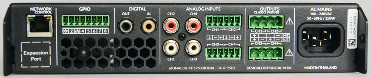 Monacor bietet mit dem PA-4125DX einen kompakten (220 * 44,5 * 320 mm, 1,95 kg) Vierzonen-Mischverstärker mit DSP-Technik für Festinstallations-Anwendungen an, der sich über Netzwerk kontrollieren lässt.
