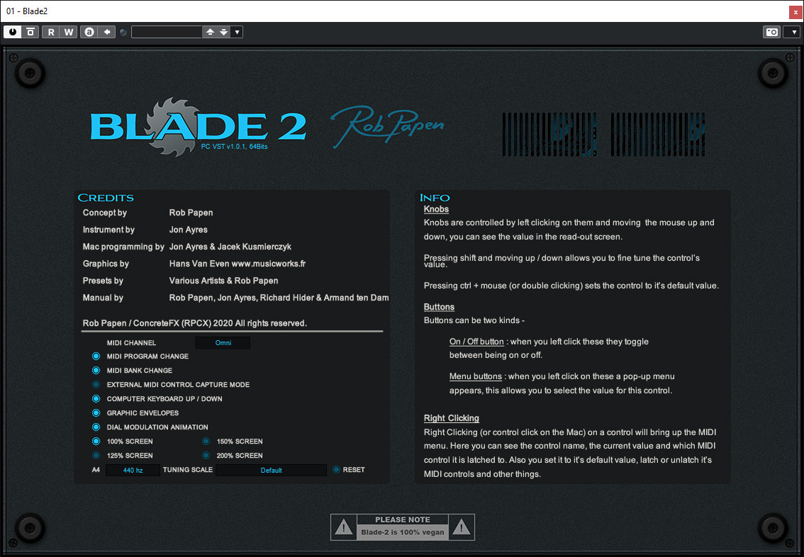 Übrigens unterstützt Blade 2 nun auch seit Dezember 2020 Native Instruments NKS System. Hierfür gibt es einen extra Installer der nach der Installation des VST-Plug-Ins ausgeführt werden muss. Bei Nachinstallation ist ggf. ein neuer Scan der Plug-Ins in der DAW-Software erforderlich.