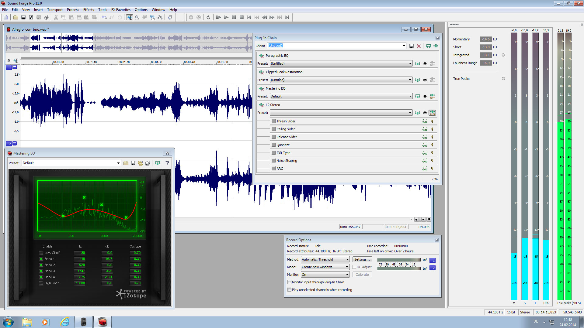 In dem Zusammenhang Loudness sei auch noch erwähnt, dass die Sound Forge Pro Version 11 nun neue Funktionen im Zusammenhang mit dem Broadcast Wave Format unterstützt wie BEXT BWF V 2.0, eingeschlossen der Lautheit-Attribute, Editierung und Anzeigen von zusätzlichen Metadaten via iXML, automatisches Update des Time-Referenz-Feldes, Coding-History-Speicherung bei Veränderung der Abtastrate oder Bittiefe, Funktionserweiterungen im Zusammenhang mit Audofill, Überprüfung und Auto-Fixing von BWF-Daten. Also auch sehr nützliche Features für die Broadcaster.