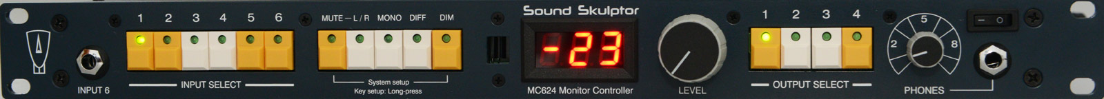 Der Sound Skulptor MC-642 ist in einem 1 HE hohem 19-Zoll-Gehäuse untergebracht. Auf der Frontseite befinden sich die sechs Schalter für die Quellenwahl, vier Schalter für die Wahl der entsprechenden Abhören, fünf Schalter für die Funktionen Mute (L/R), Mono, Difference und Dim., ein Lautstärkeregler für die Ausgänge, ein Lautstärkeregler für den Kopfhörerausgang, ein Dreisegment Display sowie zwei 6,3-mm-Klinkenbuchsen, eine für den Kopfhörerausgang sowie eine für den Eingang 6. Der Eingang 6 liegt parallel auch auf der Rückseite an - hier als Cinch-Pärchen.