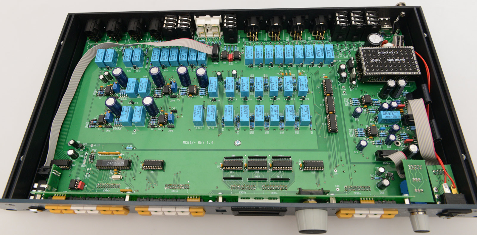 Herzstück des Sound Skulptor MC-642 ist ein PIC (programmable integrated circuit). Dieser ist verantwortlich für die Steuerung der Schaltprozesse, er erlaubt des Weiteren die Anpassung der verschiedenen Pegel für Quellen und Senken. So lässt sich zum Beispiel. jeder Eingang als symmetrisch/unsymmetrisch definieren, eine Umschaltung zwischen Hi- und Low Gain (-10 dBV/+4 dBu) ist ebenso möglich.
