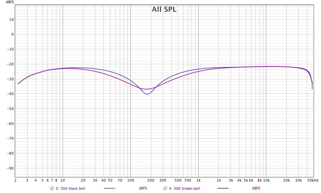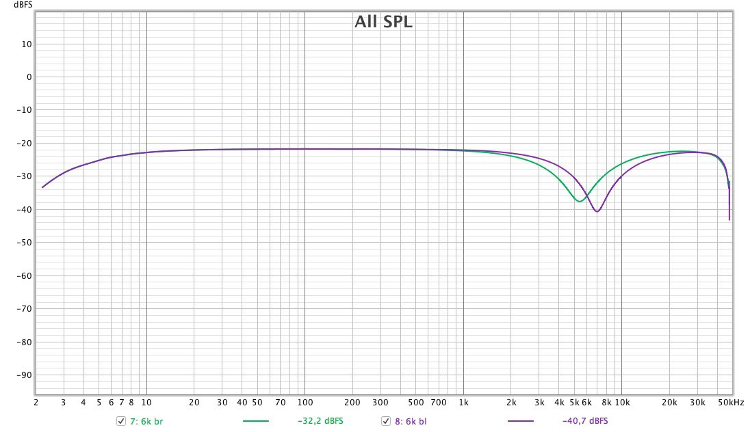 In den Mittenbändern gibt es zwischen Black- und Brown-Modus Unterschiede. Exemplarisch hier das HiMid-Band (s. Abb. unten). Laut Frontplatten-Beschriftung, 6 KHz, narrow, maximale Absenkung.