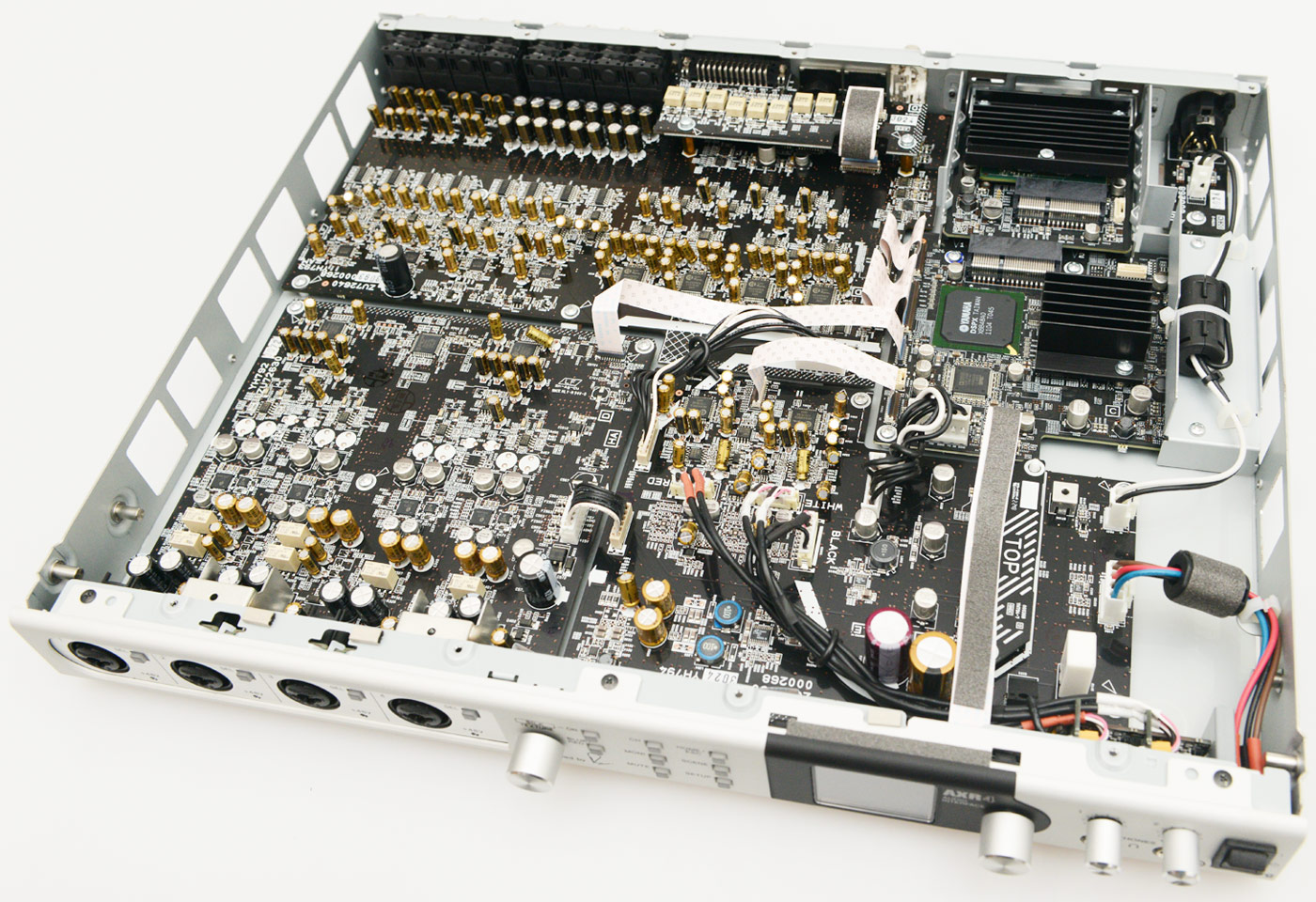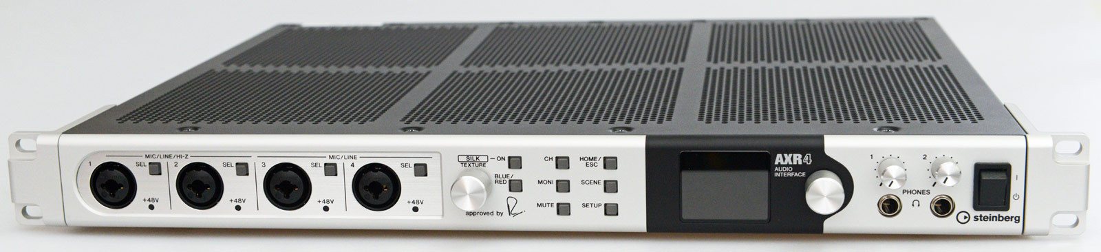 Das AXR4 ist ein flexibles Audiointerface inklusive AD/DA-Wandlern mit Abtastraten von 44,1 kHz, 48 kHz, 88,2 kHz, 96 kHz, 176,4 kHz, 192 kHz, 352,8 kHz bis zu 384 kHz und 32-Bit Auflösung im 19-Zoll-Format und einer Höheneinheit. Jeder der vier Class-A-Mikrofonvorverstärker ist mit einer DSP-Emulation der SILK-Schaltung von Rupert Neve Designs ausgestattet und stammt aus der Entwicklung der bekannten Yamaha High-End-Mischpultserie Rivage PM10. Ein eigener DSP sorgt für latenzfreies Monitoring inklusive Effektsektionen Hall, EQ und Kompressor ohne die CPU des Host-Systems zu belasten. Darüber hinaus verfügt das AXR4 über 24 Ein- und Ausgänge, Word Clock, MIDI I/O und zwei Kopfhöreranschlüsse.