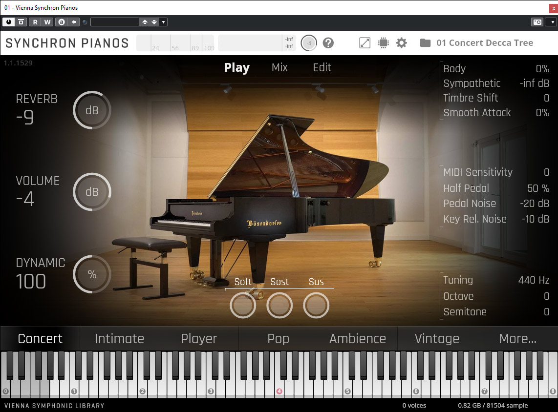Aber der Dynamikbereich ist trotz allem gewaltig. Er wird sicherlich zu Unrecht häufig direkt ausschließlich in Verbindung mit den musikalischen Genres Kammermusik und Jazz gebracht. Der Bösendorfer 280VC kann mehr. und ich halte Ihn auf Grund seiner klanglichen Eigenschaften auch Ideal für den Einsatz im Studio und nicht nur in einem großen Konzertsaal. Und hier schließt sich dann auch wieder der Kreis mit der Bösendorfer 280VC Bibliothek von Vienna Symphonic Sound Library, die genau dies ermöglicht, nämlich den 280VC ins Studio, oder besser gesagt in die Digital Audio Workstation zu bringen und dank der hervorragenden Aufnahmen, bzw. Samples mit den verschiedenen mischbaren Mikrofonpositionen, auf einem extrem hohen Niveau.