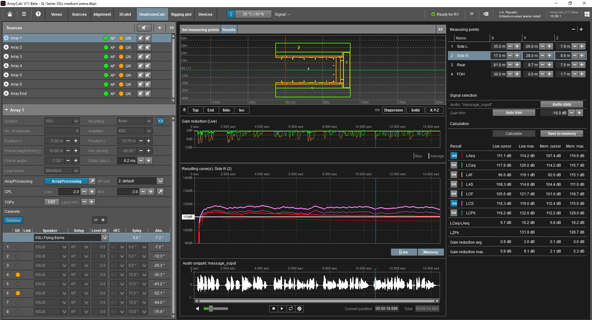 The latest update to d&b´s ArrayCalc simulation software now includes HeadroomCalc, a patent pending, and advanced time-domain (calculation) model.