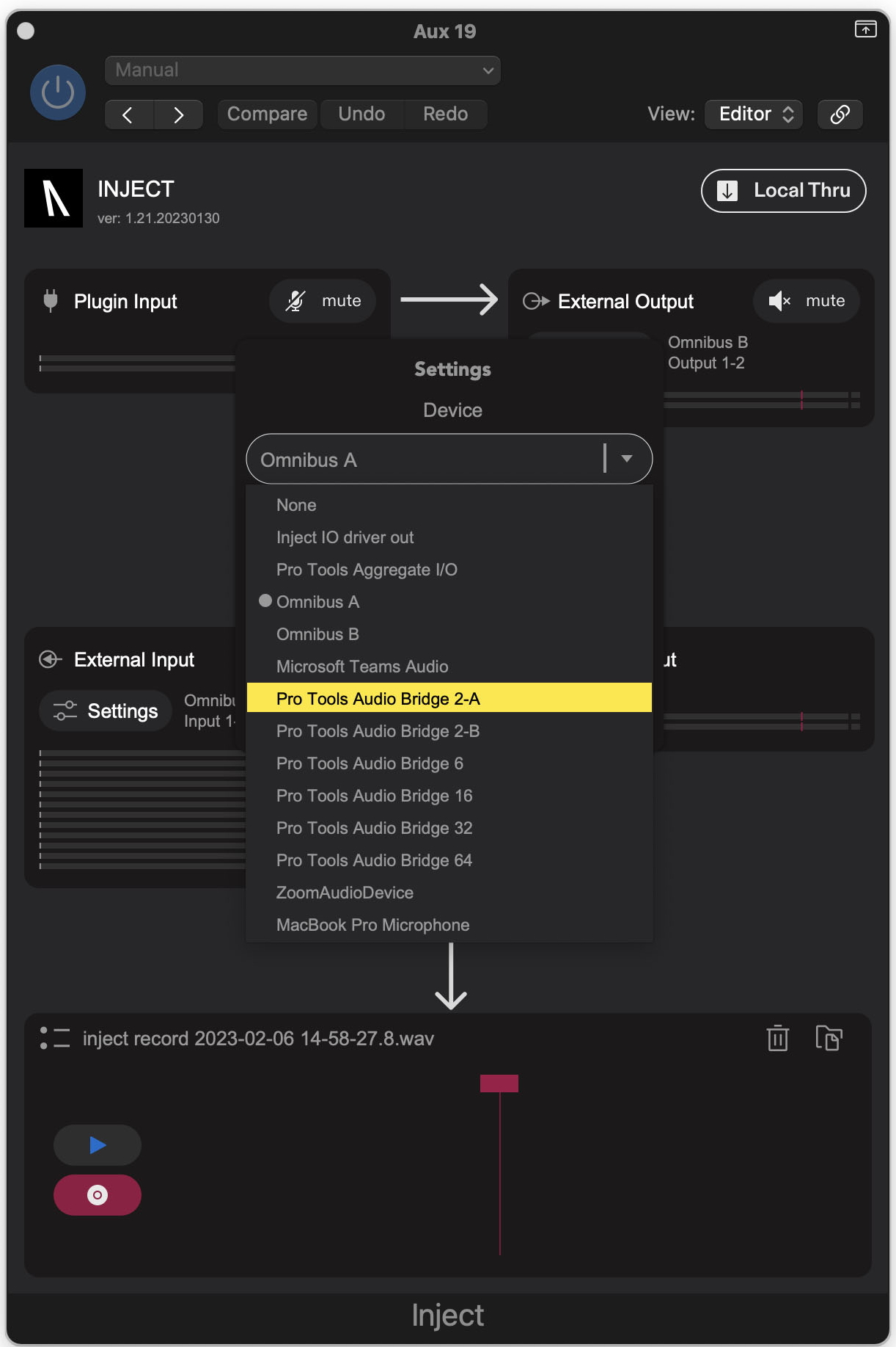 INJECT’s built-in recorder has drag-and-drop functionality that allows users to quickly capture audio snippets for further manipulation or referencing in any major DAW. INJECT is also supplied with a virtual audio driver for inter-application audio routing.