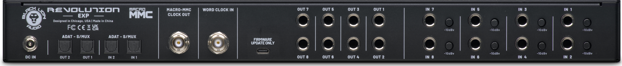 But Black Lion Audio being Black Lion Audio, there is more to Revolution EXP than might meet the eye at first glance, however - not least its proprietary MACRO-MMC clocking technology. Being based on Black Lion Audio’s numerous clocking products and interface modifications, MACRO-MMC’s extraordinarily low jitter ensures extraordinary clarity and sheen in the high-end, so operates beyond merely keeping all connected devices in sync, but also ensures that every connected device sounds its absolute best, bolstered by boutique components from Vishay, Nichicon, and Wima that, themselves, ensure maximum signal quality and low-noise. Needless to say, Revolution EXP supports sample rates up to 192 kHz, so can comfortably be used as the primary word clock device driving entire studios, or synchronised itself to an external clocking device - hence its WORD CLOCK IN-labelled BNC connector.