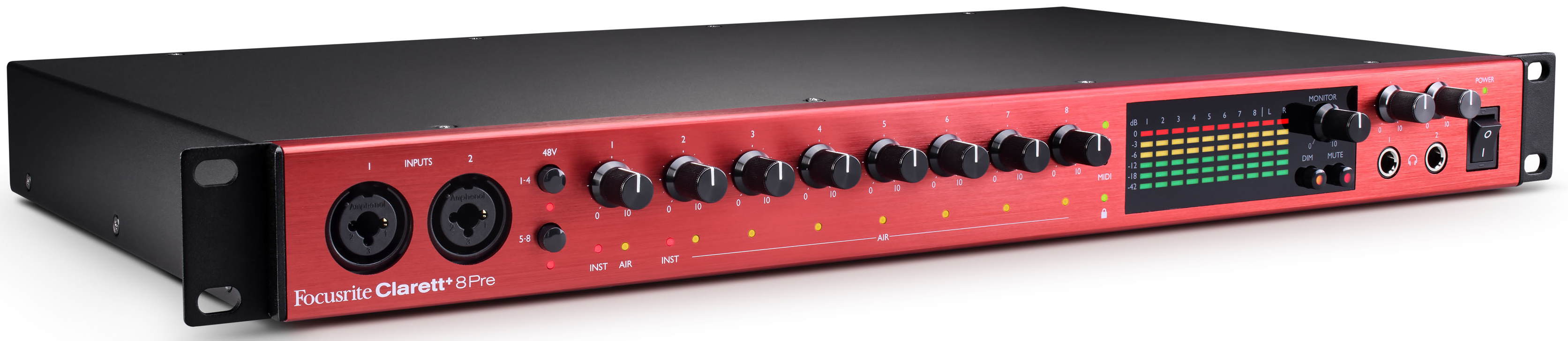 - Eight professional-quality Clarett+ preamps featuring All-analogue Air that bring masses of headroom, low distortion, and ultra-low noise.