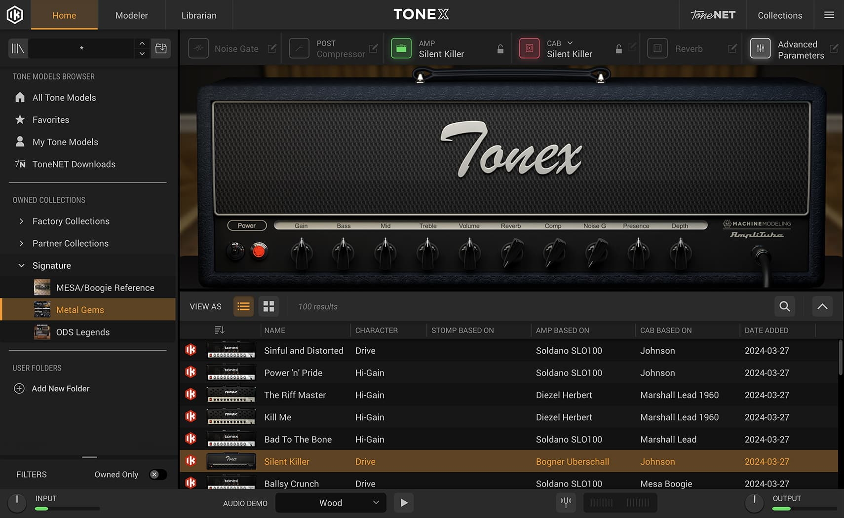 IK Multimedia releases Metal Gems Signature Collection for TONEX, continuing IK’s commitment to expanding the TONEX ecosystem with 100 essential high-gain Tone Models. IK also announces that a firmware update for TONEX Pedal is available today, adding a highly requested built-in chromatic tuner for guitar and bass. Metal Gems is an exclusive collection of 100 high-gain Tone Models, meticulously captured to deliver both classic and contemporary metal tones, giving users instant access to 4 legendary amps: a Diezel Herbert, Bogner Uberschall, Soldano SLO-100 and a Peavey 5150.