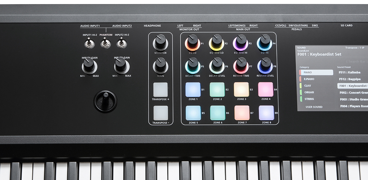Discover the TP100LRG key action, featuring the latest technology from Fatar, the world’s leading piano keybed manufacturer. The action is ideally balanced for feel and playability, serving a variety of playing styles. The SP7 Grand offers 16 performance zones for creating your own sonic split/layer combinations along with a host of customizable controllers.