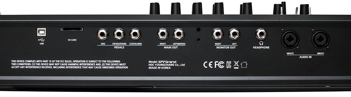 21 effect algorithms are available to enhance the SP7 Grand’s rich sound, including reverb, BPM-synced delay, chorus, flange, compression, various distortion types, rotary speaker, tremolo, wah-wah and eq.