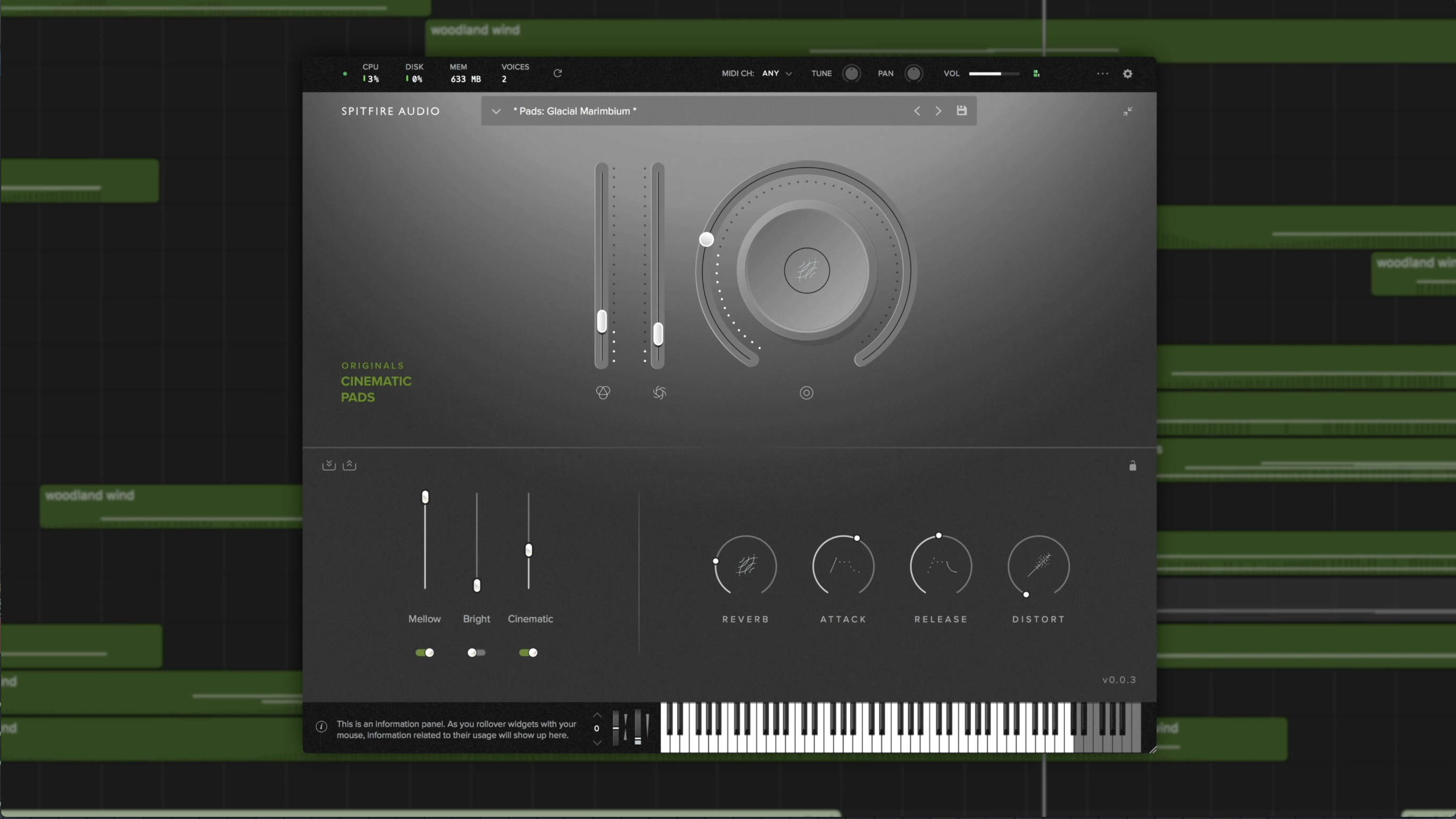 Those 23 presets - Bowed Glass, Cavernous Bellowing, Celestial Stops, Chatter Organ, Chilling Forest, Deep Churn, Dystopian Ruin, Euphoric Sandstorm, Falling Steam, Fluorescent Corridors, Frosty Exhale, Glacial Marimbium, Halcyon Strings, Midnight Waves, Mountaintop Wind, Nauseous Static, Pulsing Water, Roadside Crosstalk, Slow Reeds, Trembling Tension, Volcanic Beaches, Woodland Wind, and Windswept Vessel - are as inspirational in name as they are in use, while those three pads to which ORIGINALS CINEMATIC PADS (partly) owes its name can be best described as a dulcet pad created from orchestral samples, perfect for creating rich beds (Mellow); an ethereal pad, carefully chosen to pair with the Mellow pad (Bright); and a distant pad created using a range hardware reverbs with other outboard and effects by Spitfire Audio co-founder and award- winning composer Christian Henson - handy for creating atmospheric, ambient sound worlds (Cinematic). Continues Homay Schmitz: “The combination of those three pad sounds has been carefully curated so you get a really great balance between those sounds, giving you these really organic, lush, and full textures.”