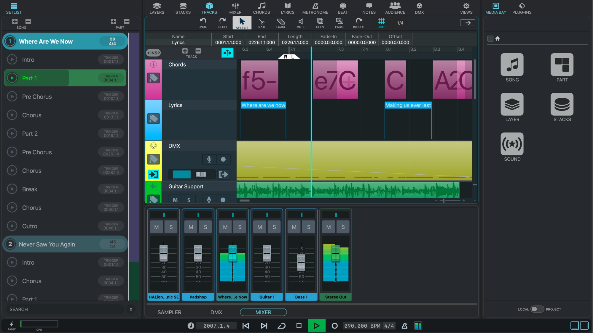 VST Live Pro allows the creation, editing and control of DMX tracks, allowing the addition of a stage lighting production. Video can also be included, with up to six video tracks. Of course, both lights and video will be in perfect synchronization with every song. Everything will happen precisely at the moment it should.
