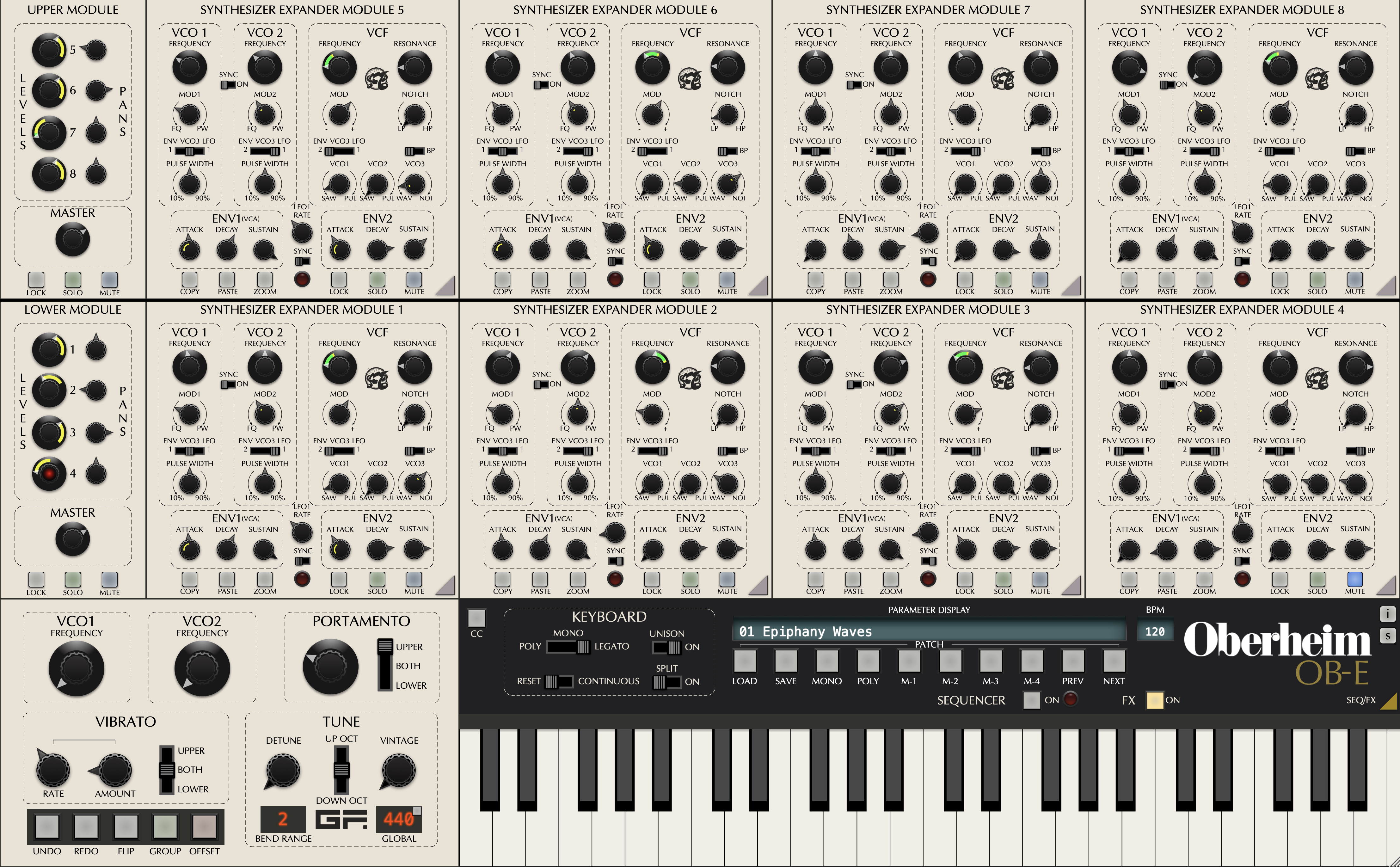 The 8-Voice is not simply eight identical SEMs put together. The interaction of those 8 independent, and slightly different Synthesizer Expander Modules, plays a major role in making the 8-Voice’s sound so incredibly beautiful. The injection of these authentic inaccuracies into each of the eight SEMs in OB-E takes it to another level, one that blurs the lines between the hardware, and makes OB-E v2 the most authentic emulation of the Oberheim SEM sound and 8-Voice instrument.