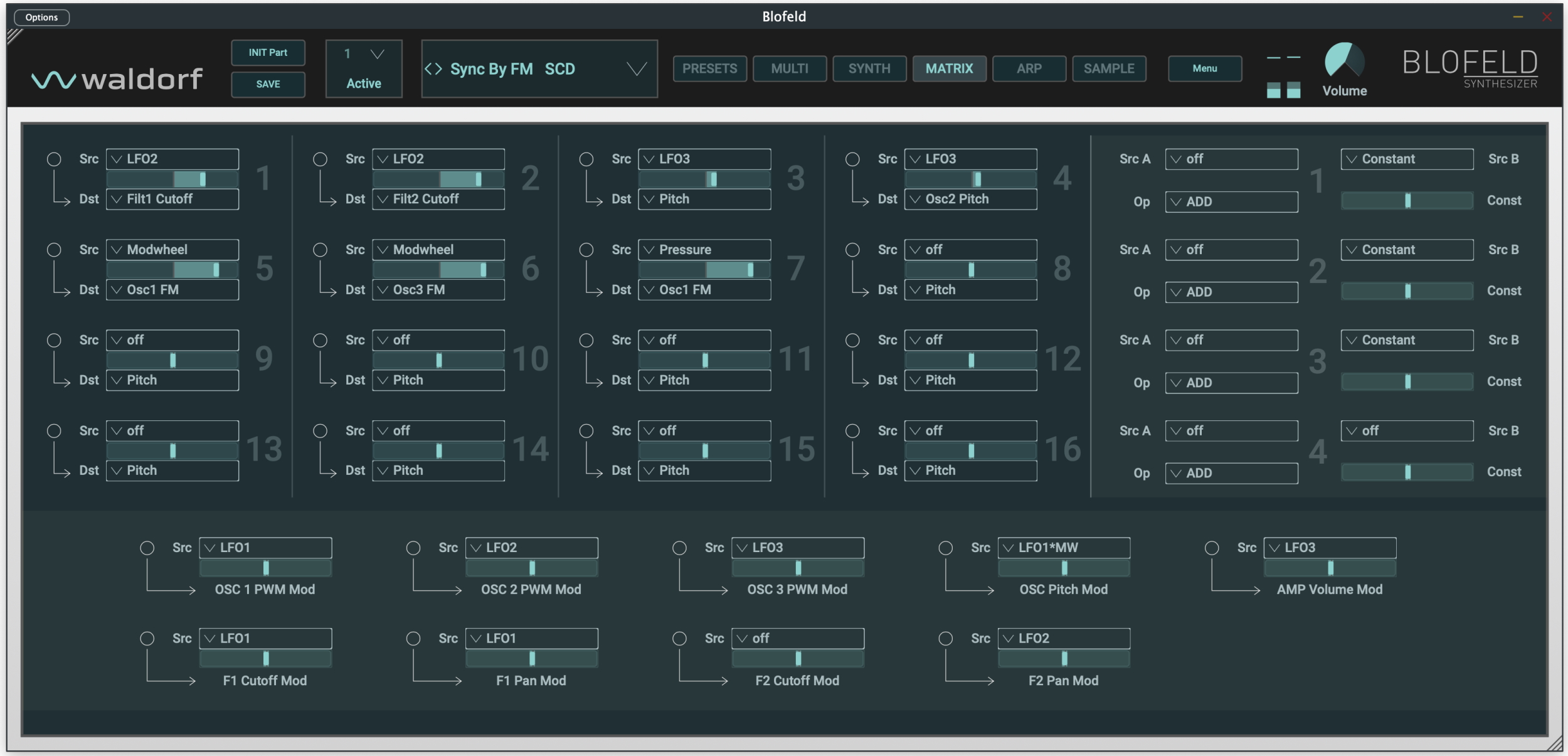 - Modulation Matrix with 16 slots To modulate almost any parameter from a wide range of sources