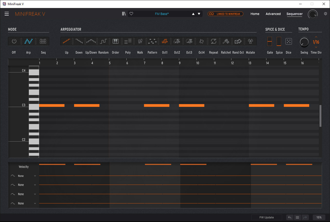 Schon beim ersten Anschließen stellt man fest, dass sich die Software mit dem MiniFreak verbindet und alle Daten übernimmt und ggf., wie in unserem Test, gleich ein Update detektiert und anbietet (s. Abb. oben). Das startet man und schon ist der MiniFreak aktualisiert. Dreht man bei bestehender Verbindung an einem Regler oder drückt eine Taste an dem Hardware MiniFreak, so übernimmt die Software die Werte. Eine Verbindung zur Hardware lässt sich übrigens sowohl bei der Stand-Alone-Software, als auch bei den Plug-Ins initiieren.