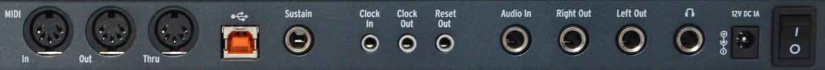 Die Spannungsversorgung erfolgt über ein mitgeliefertes, externes Netzteil. Der MiniFreak verfügt über ein MIDI-Interface mit In/Out/Thru-Buchsen (5-pol. DIN), einem USB-Port, Anschluss für Sustain-Pedal und Clock In/Out und Reset Out (3,5-mm-Klinkenbuchse). Auf ein CV-Interface für die Verbindung zu einem Eurorack-Modularsynthesizer hat man verzichtet. Neben den beiden Audioausgängen (Links/Rechts) gibt es noch einen Kopfhörerausgang und auch noch einen monophonen Audio-Eingang zum Bearbeiten von externen Audiosignalen, in Form von 6,3-mm-Klinkenbuchsen.