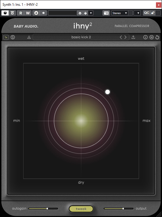 Ich selber bin ja ein großer Fan der Parallelkompression. Sicher kann man das auch mit jedem anderen Kompressor-Plug-In und Routing erledigen, aber eben nicht so komfortabel. Der Vorteil der IHNY Version 1 war die Einfachheit in der Bedienung und Effizienz in der Wirkung. Der Basisalgorithmus bei der Version 2 ist eigentlich der gleiche wie bei der Version 1. Der Code wurde laut Aussage des Entwicklers aber etwas aufgeräumt, leicht optimiert und eben um die neuen Regelmöglichkeiten erweitert. Diese Optionen vergrößern allerdings die Anwendungsmöglichkeiten des Plug-Ins deutlich, weil man die Regelung viel feinfühliger einstellen kann, besonders was die Transienten angeht. Hier verschlucken viele Kompressoren genau das, was man eigentlich mit dem Kompressor forcieren möchte. Das ist beim IHNY-2 unter anderem dank des Parameters Punch deutlich besser gelöst. Aber IHNY-2 eignet sich nicht nur für Drum, Perkussion und Bassläufe sondern, wie schon erwähnt, das Spektrum ist deutlich größer.