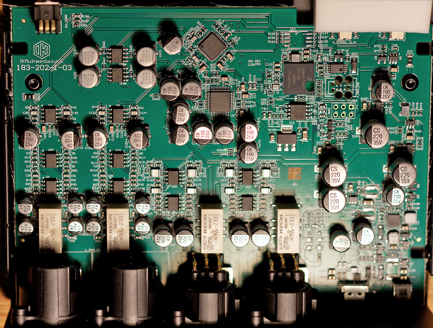 Aufbauend auf der eigenen Raumkorrektur-Software-Lösung ARC (Advanced Room Correction System), die gerade in der vierten Version veröffentlicht wurde, stellt IK Multimedia eine Lautsprecherunabhängige Hardware-Version des eigenen Systems vor. Die integrierte Prozessoreinheit präsentiert sich in einem soliden und eleganten Gehäuse aus Aluminium und Stahl und spartanisch elegantem Bedienpanel bestehend aus einem mittig beleuchteten Schalter zum Wechsel zwischen Aktivierung der Korrektur und True-Bypass (Relais-geschaltet) ergänzt um jeweils eine Power- und eine Signal/Clip-LED. Rückseitig stehen jeweils zwei symmetrische XLR-Buchsenpaare für Eingangs- und Ausgangssignale sowie ein Netzteilanschluss neben einem USB-C-Port zur Verfügung.