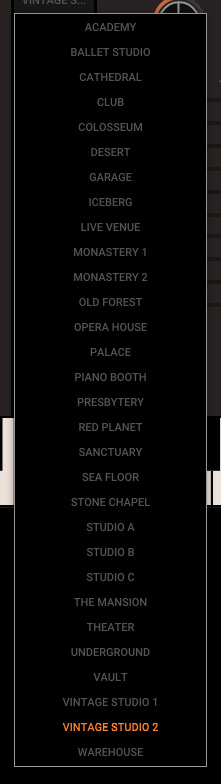 Bei der Auswahl von möglichen, akustischen Umgebungen war man durchaus kreativ, denn es gibt neben vielen üblichen Räumen auch Spaces wie Eisberg, Wald oder Marsoberfläche.