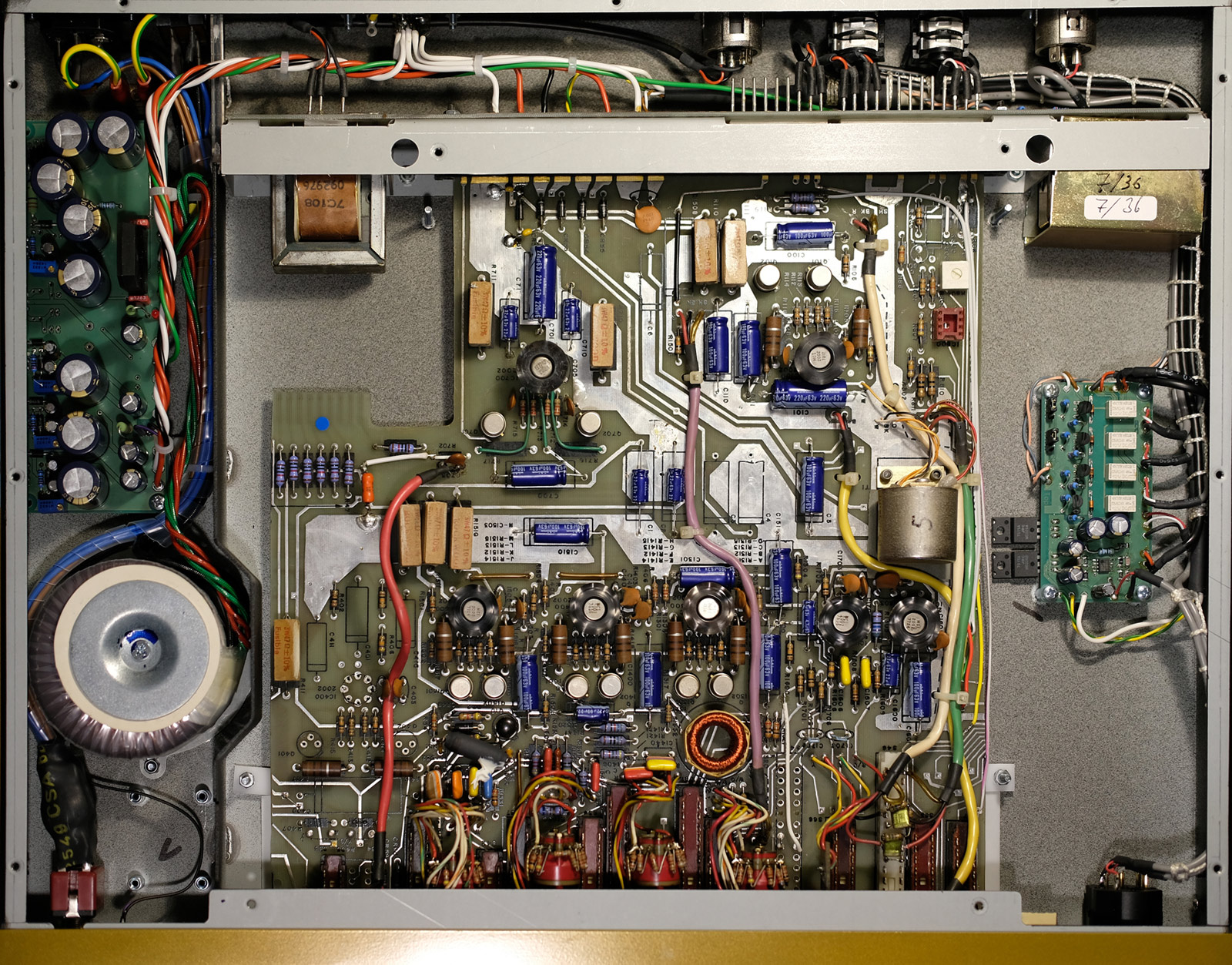 Ulrich Schierbecker: Natürlich zunächst einmal alle Elkos und schließlich auch die Operationsverstärker. Letztere laufen auf einer relativ hohen Spannung und sind mittlerweile ziemlich rar. Glücklicherweise konnten wir da noch auf eigene NOS-Restbestände im Lager zurückgreifen. Neben Kondensatoren haben wir darüber hinaus natürlich auch komplett neue Netzteile eingebaut, welche wir speziell für den JH-500 angefertigt haben. Zur Ergänzung haben wir dann noch einen zusätzlichen Hi-Z-Eingang spendiert welcher das anliegende Signal ebenfalls über den Mikrofonübertrager führt. Zur besseren Abschirmung wurden zudem noch Mu-Metall-Folien im Trafobereich und an einer kritischen Spule des EQs hinzuaddiert. Durch diese Modifikation ist die 19"-Version letztlich im Nebengeräuschverhalten deutlich leiser als im ursprünglichen Pultgefüge.