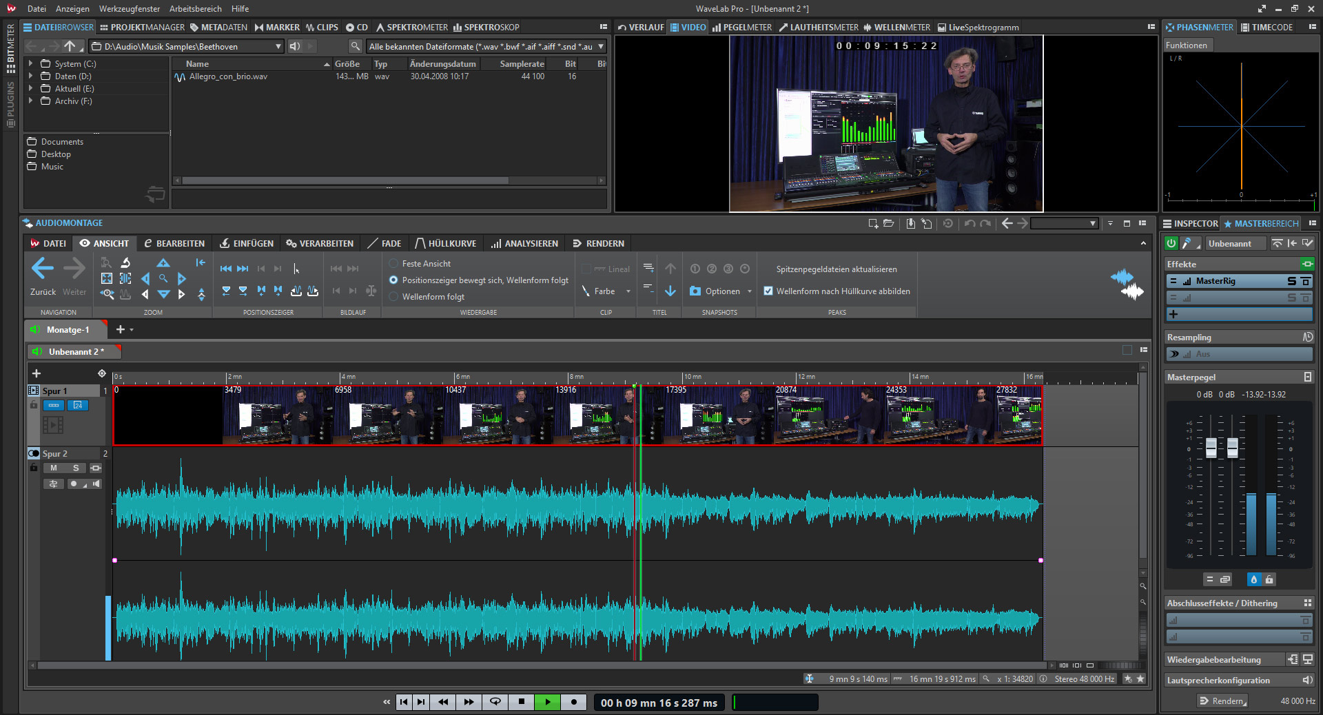 In WaveLab 10 Pro lässt sich nun auch Videomaterial in der Montage auf eine Videospur laden. Das Audiomaterial dazu wird automatisch auf eine weitere Spur abgelegt (s. Abb. unten).