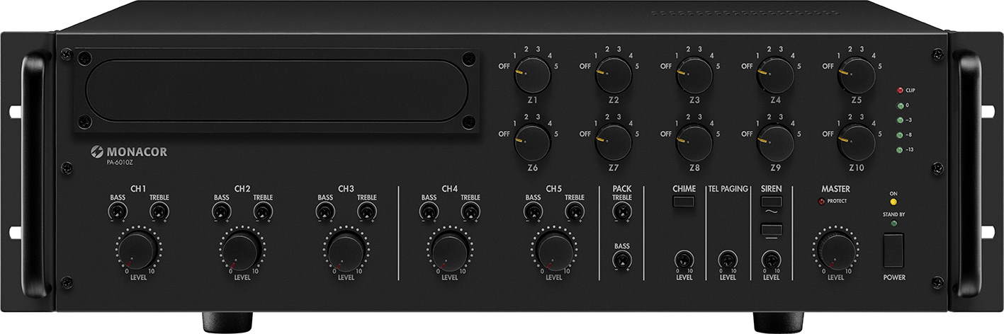 For more extensive, large-area and/or subdivided PA applications, MONACOR now provides the new zone mixing amplifiers PA-6010Z and …