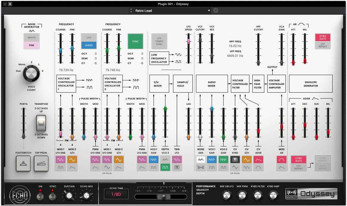 Not only is it accurate sonically, but with their experienced circuit modelling and signal processing, WayOutWare captured the behaviour, character and charm of the original ARP Odyssey. With Expression pedal modulation, velocity and channel pressure support built-in every attention to detail and realism has been made.