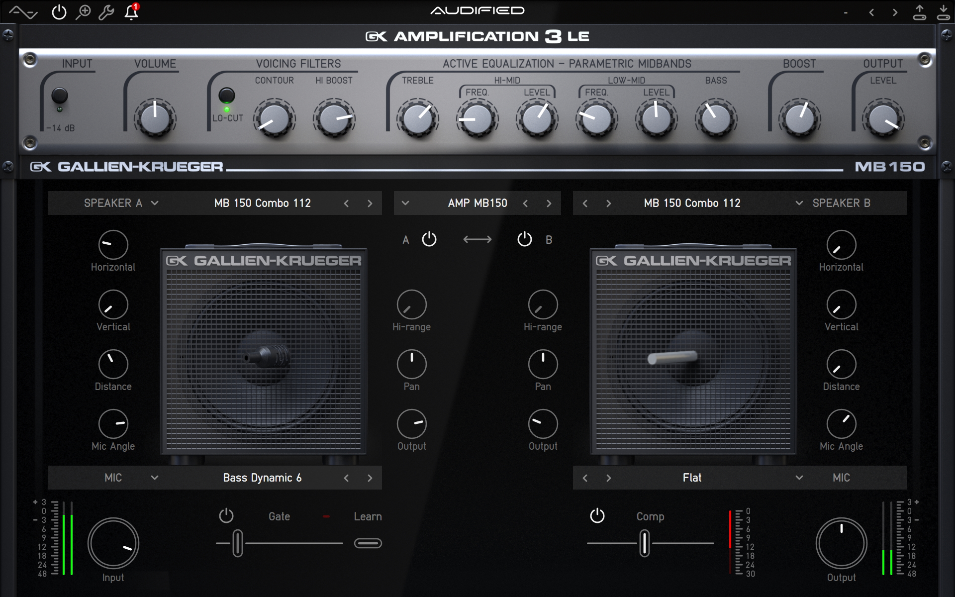 But better still, GK Amplification 3 Pro’s newly-built-in smart noise Gate (with an intuitive Learn function that sets the perfect threshold within seconds) and simple Comp control (tuned to sound just right either in the studio or on stage) smooth the way for working within the plug-in itself - no need to use additional plug-ins, in other words.