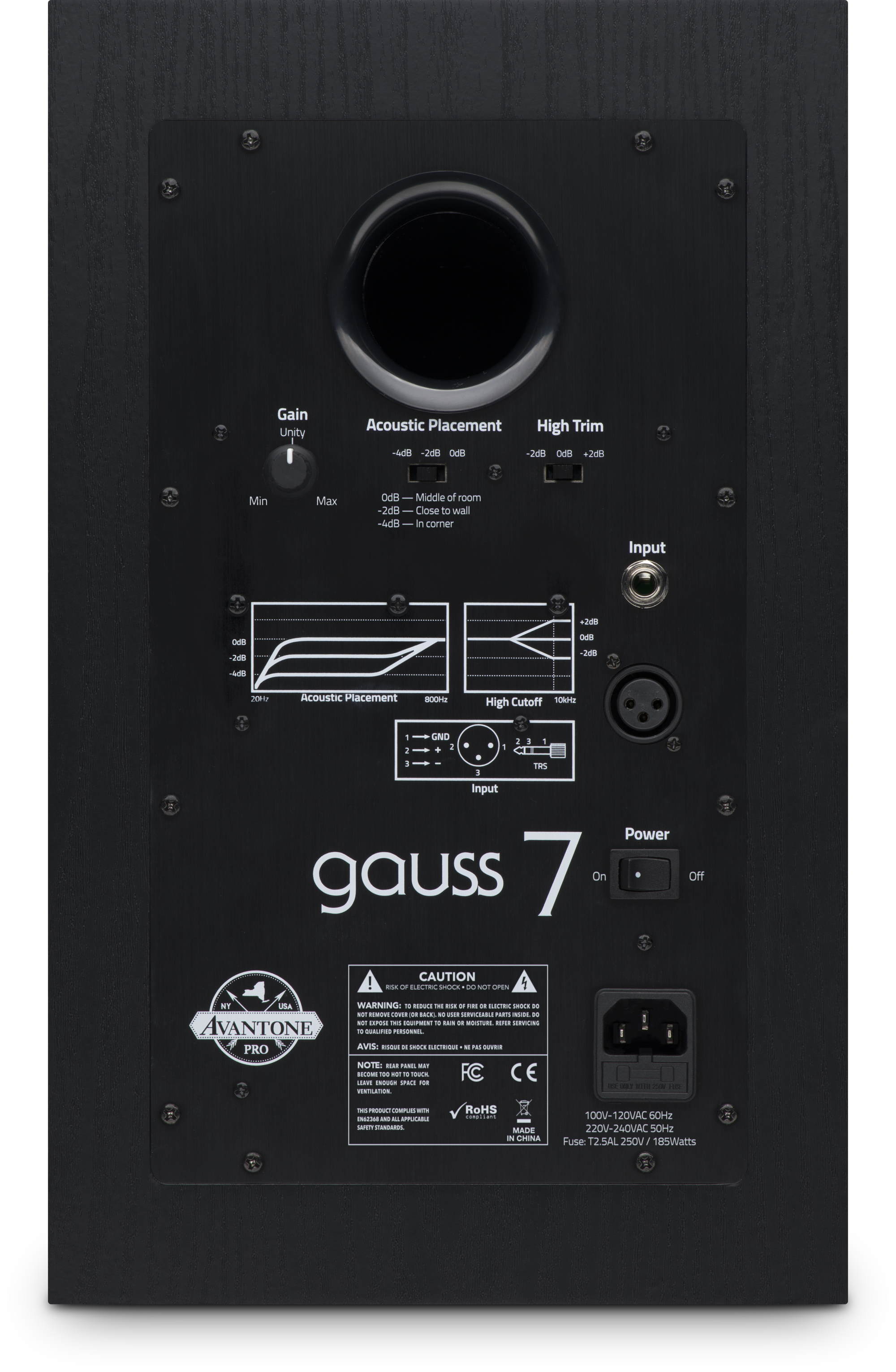 Rounding out its impressive specification - edited highlights of which include a 7” (178mm) Ferrite Motor GAU-7MLF low-frequency driver, 2.5” (65mm) GAU-AMT high-frequency driver, 120W low-frequency amplifier power, 60W high-frequency amplifier power, 103dB (Peak) SPL (Sound Pressure Level), and 0.5% THL (Total Harmonic Distortion) delivered from a beautifully executed enclosure measuring 381mm H x 235mm W x 212mm D (15” H x 9.25” W x 8.35” D) and weighing in at 8.2kg (18 lbs), balanced XLR and 1⁄4” TRS inputs make connecting Gauss 7 a breeze. But it takes a little more than that to create a studio-strength reference monitor - hence its back panel providing powerful, yet easy- to-use controls for fine-tuning the system to work well within whatever room it is installed, such as a three-position Acoustic Placement switch (allowing anyone to optimize Gauss 7 to boundary spaces within that room), an adjacent three-position High Trim switch (helping to refine additional room issues), and last, but by no means least, a Gain control (for proper system calibration).