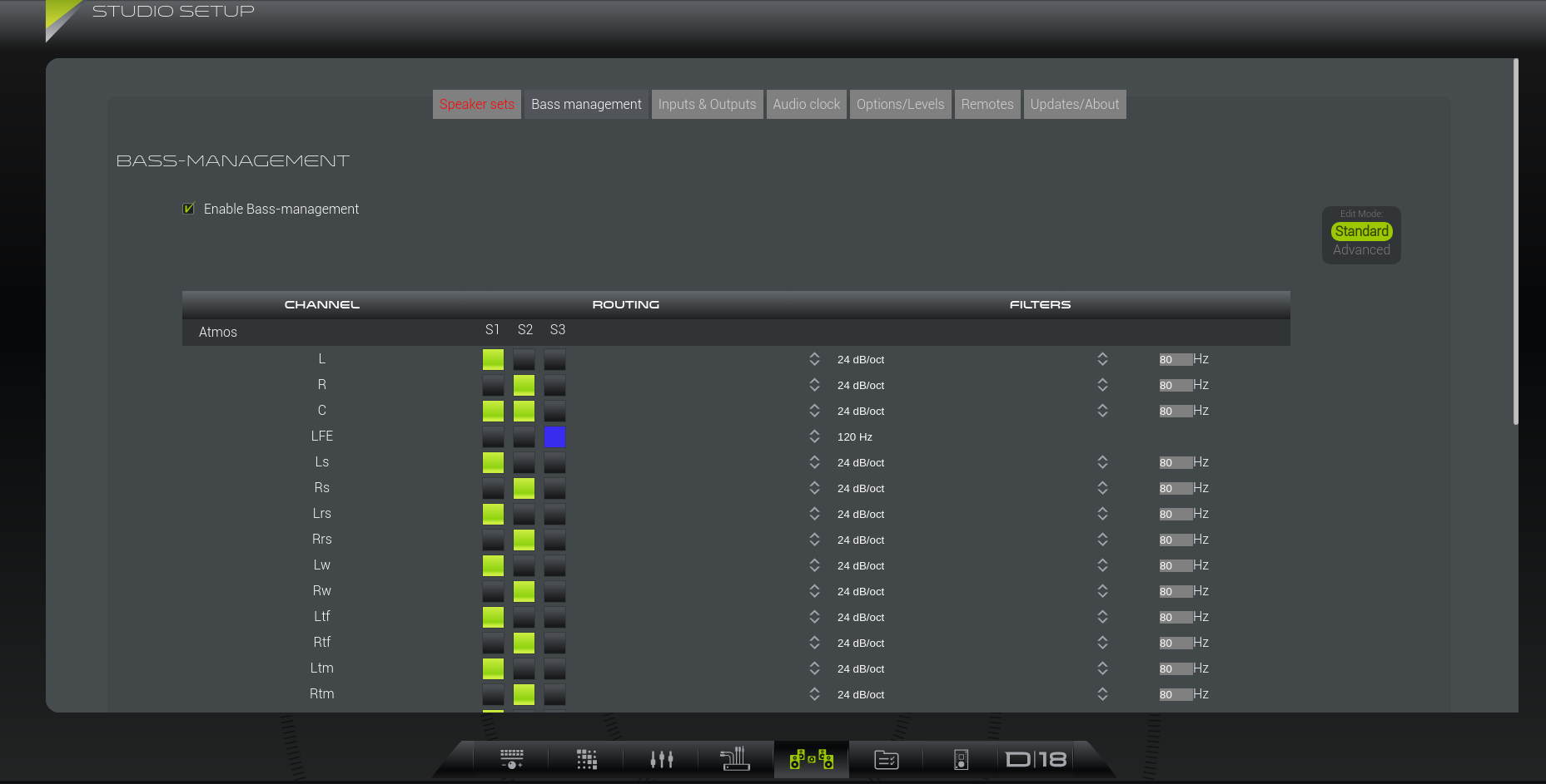 With our Matrix Bass Management, you can bass manage any channel to any combination of subwoofers. The advanced mode allows you to fine tune the crossover filters for each channel.